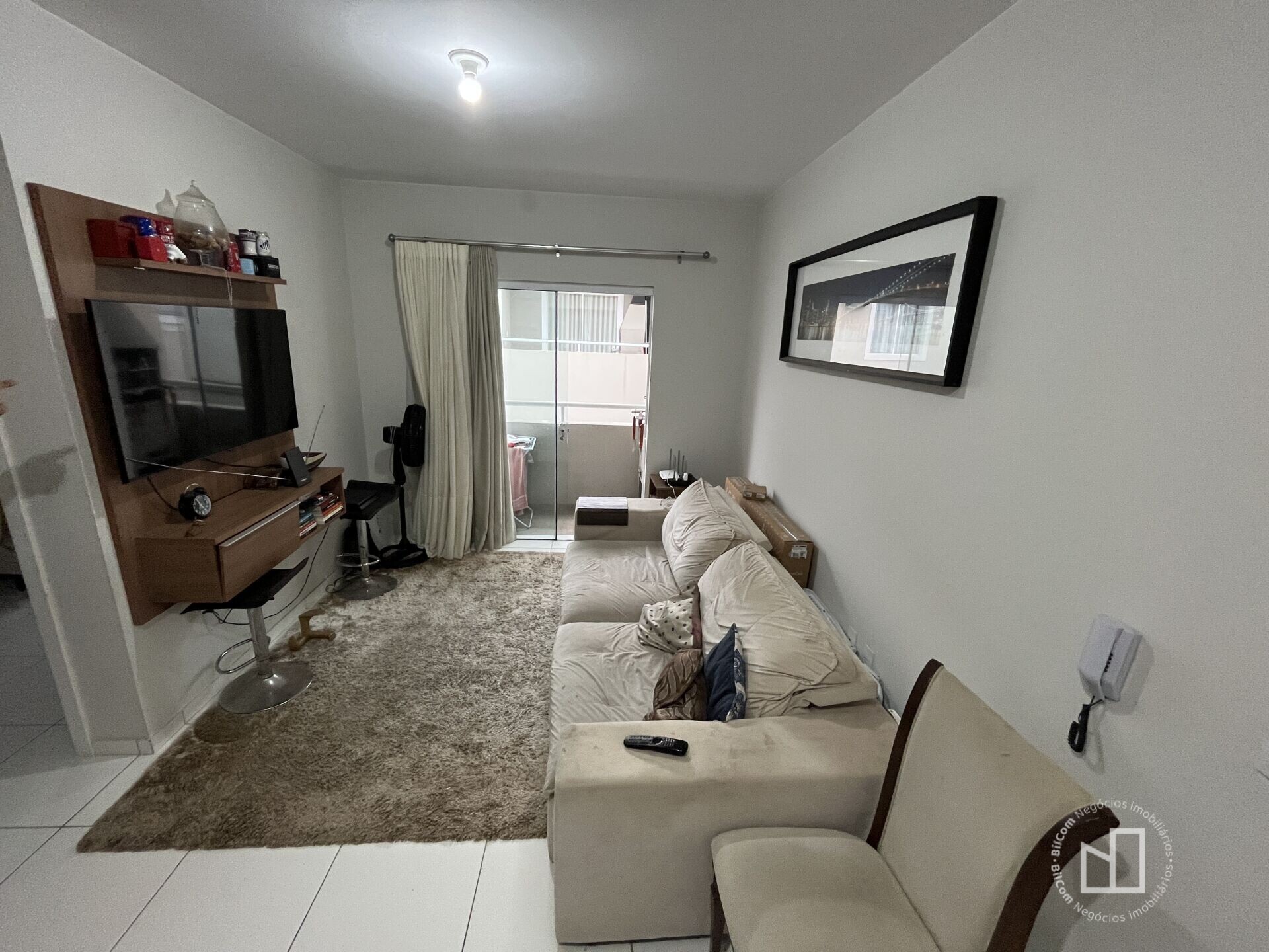 Possui 2 dormitórios, sala de TV, sala de jantar, banheiro, cozinha, área de serviço, sacada com churrasqueira e vaga de garagem.